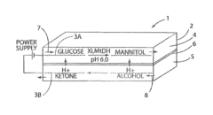 - A bioelectronic device with a conductive carbon electrode and a bioelectronic interface where the catalytically active material is electrostatically bound, allowing for easy removal and replacement, and a process for reconstituting the interface using pH-dependent bonding and sequential immersion in solutions with soluble reactants, enabling renewable and efficient electron transfer.