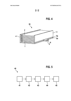 Integration of nanomaterials such as carbon nanotubes, graphene, and nanoparticles into energy storage components for bioelectronic interfaces. These nanomaterials offer enhanced surface area, improved conductivity, and superior electrochemical properties compared to conventional materials. Nanomaterial-based energy storage solutions enable miniaturization of bioelectronic devices while maintaining or improving power capacity and charge-discharge rates.Expand Specific Solutions