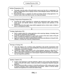 - An antibacterial coating process for pills bottles involving a specialized coating composition with potent antibacterial agents that forms a durable, broad-spectrum protective layer, applied through surface preparation, coating application, and drying or curing, ensuring long-lasting inhibition of bacterial growth.