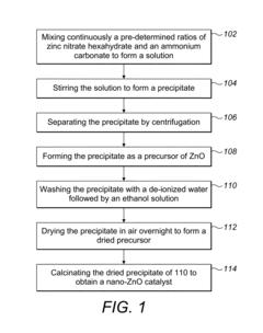 Technical Solution: Hunan University has developed an innovative approach to photocatalytic degradation of pollutants using sulphanilic acid-derived catalysts. Their research focuses on the design of hierarchical nanostructures that incorporate sulphanilic acid as a surface modifier and sensitizer. The university's team has successfully synthesized 3D flower-like TiO2 architectures functionalized with sulphanilic acid, which exhibit superior photocatalytic activity compared to conventional TiO2 nanoparticles[1]. These catalysts demonstrate enhanced visible light absorption and improved charge carrier separation, leading to efficient degradation of various organic pollutants, including textile dyes and pharmaceutical contaminants[2]. Additionally, Hunan University has explored the integration of graphene-based materials with sulphanilic acid-modified semiconductors to further enhance the photocatalytic performance through improved electron transport and increased adsorption capacity[3].