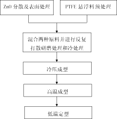 - A composite material of polytetrafluoroethylene PTFE matrix and micro-nano zinc oxide ZnO is prepared through steps such as ultrasonic vibration dispersion, surface treatment, repeated dispersion and grinding, cold treatment and high-temperature molding to form a functional composite material with nonlinear conductivity characteristics.