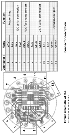 - Biosensor integration and signal transduction: Biosensor integration focuses on the development of bioelectronic interfaces that can effectively detect and transduce biological signals into electronic outputs. These systems incorporate various sensing elements such as electrochemical, optical, or mechanical transducers to monitor biological parameters. The efficacy of these biosensors depends on their sensitivity, specificity, response time, and ability to function in complex biological environments. Advanced signal processing techniques are employed to enhance signal quality and reduce noise interference.